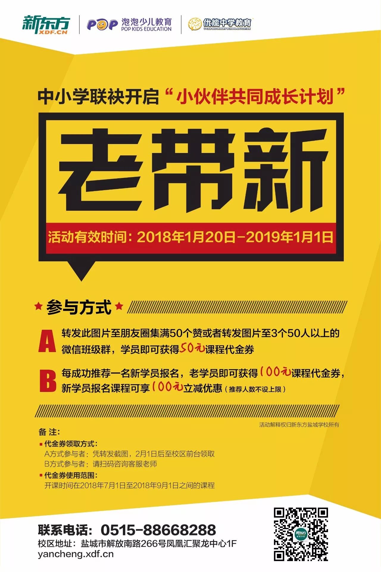 新东方盐城学校积极响应大家的报班需求,特地推出贴心的老带新活动!!!时间有限,赶紧抱紧东方君,一起来看下“老带新”优惠活动详情: